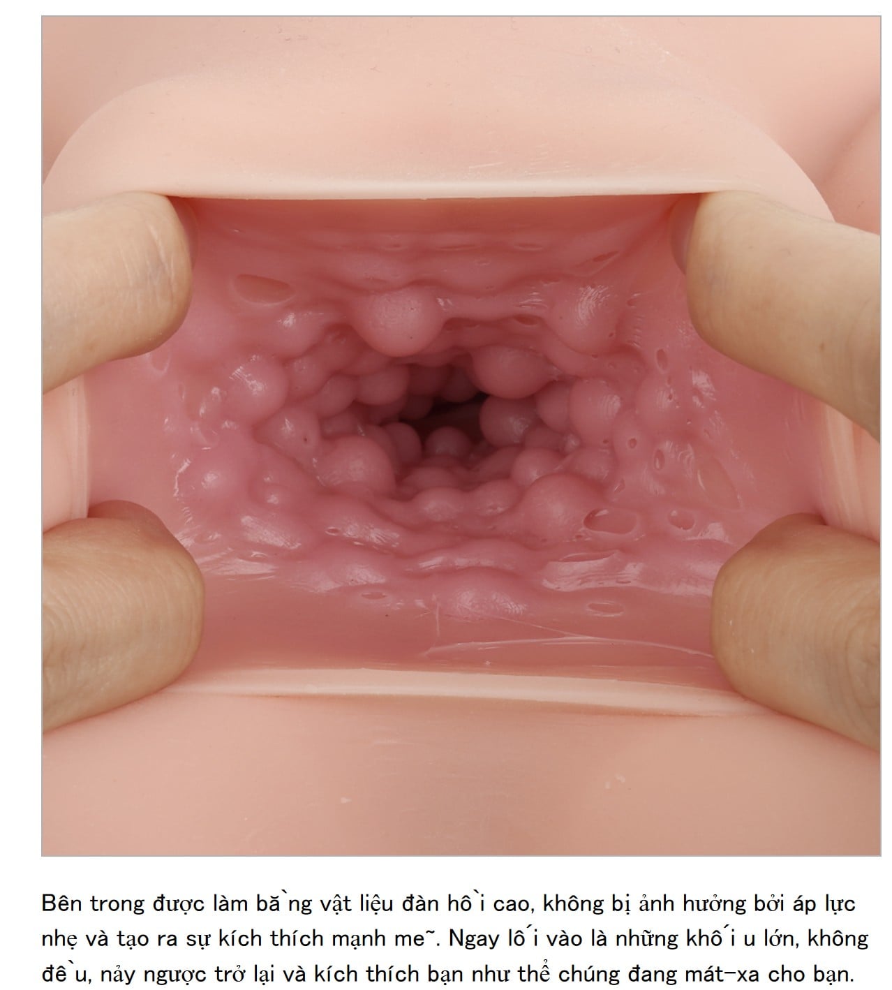 Nó tái tạo cảm giác dễ chịu khi được kẹp giữa lớp thịt dày, và mỗi khi nó đi qua các nếp gấp cong, nó kích thích đầu dương vật của bạn cả trước và sau với cảm giác ngứa ran!